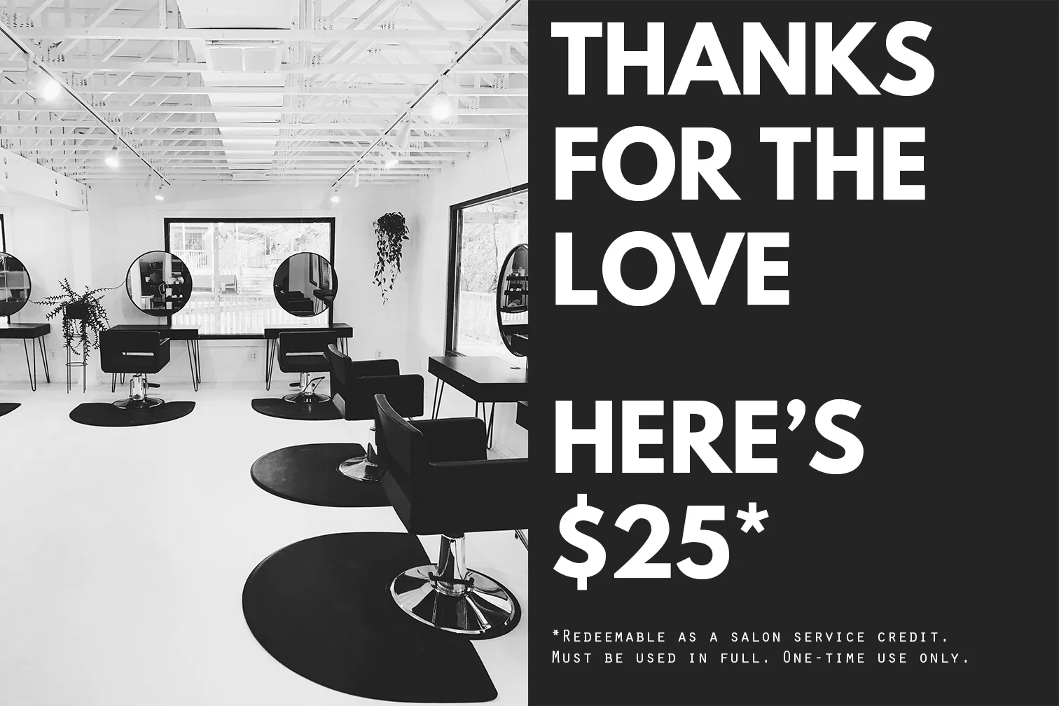 *Redeemable as a salon service credit. Must be used in full. One-time use only.